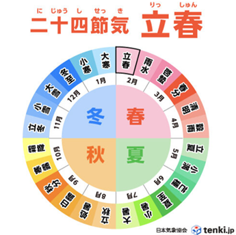 「立春」とは、二十四節気の最初の節目で、「暦の上で春が始まる日」を指し、「春の気が立ち上がる」という意味があります。節分の翌日から次の節気「雨水」の前日までの期間です。