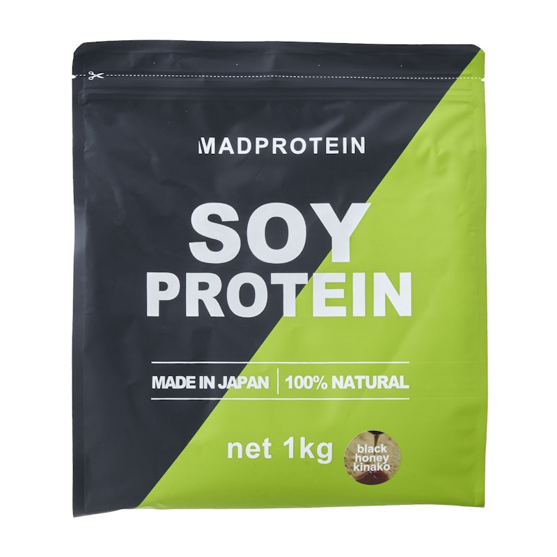 MADPROTEINの「ソイプロテイン」は天然甘味料を使用しており、黒蜜きなこや抹茶ラテなど、フレーバーが豊富なのが魅力です。